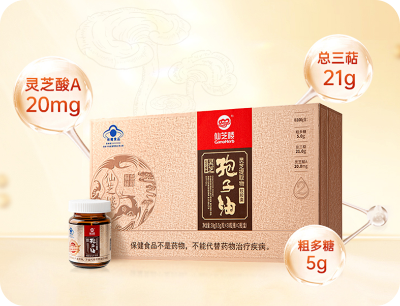 含量成分升级:粗多糖5g、总三萜21g、灵芝酸A20mg